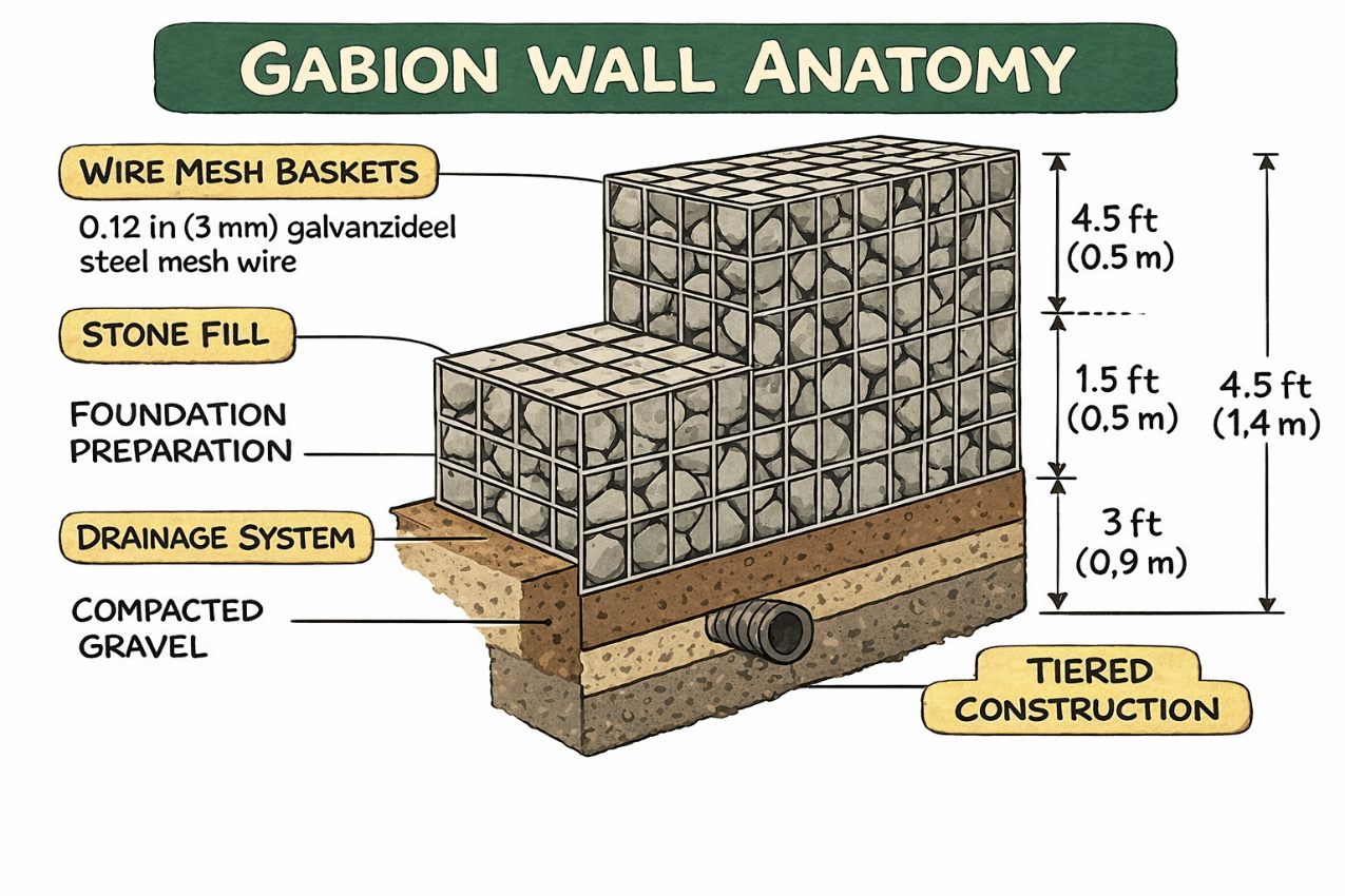 📏 Typical Gabion Wall Heights & Applications